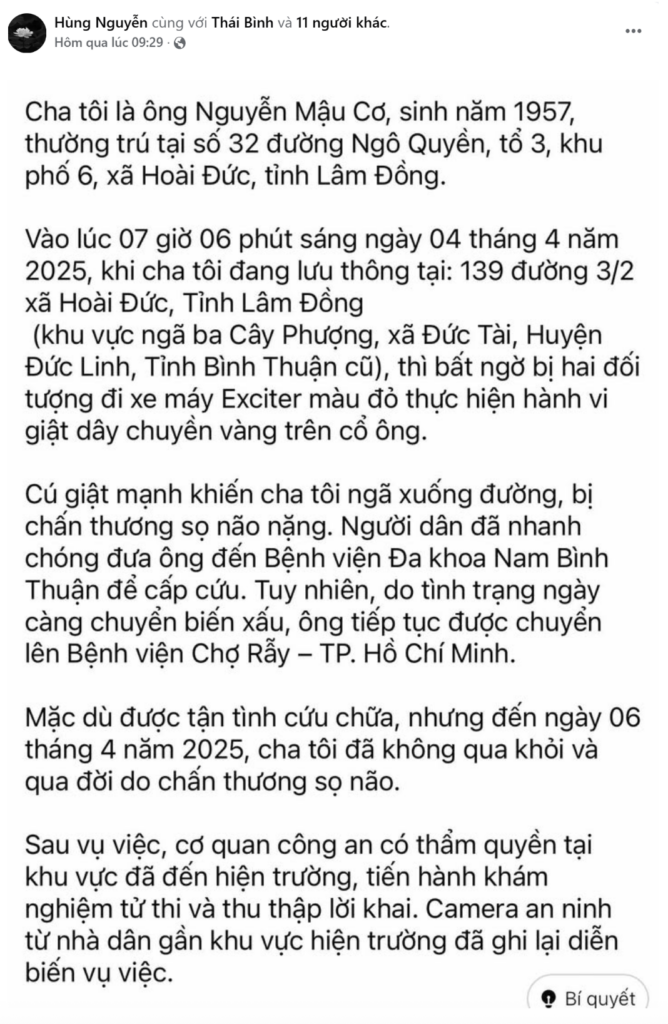 Lâm Đồng: 1 ng đàn ông b! cướp dây chuyền khi đang đi xe máy khiến ông ngã xuống đường và không qua khỏi sau đó
