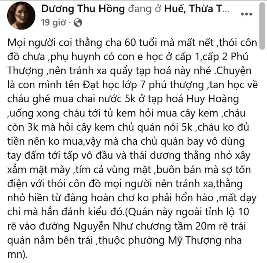 Xác minh vụ một học sinh bị đánh liên tiếp vào mặt ở tiệm tạp hóa tại Huế