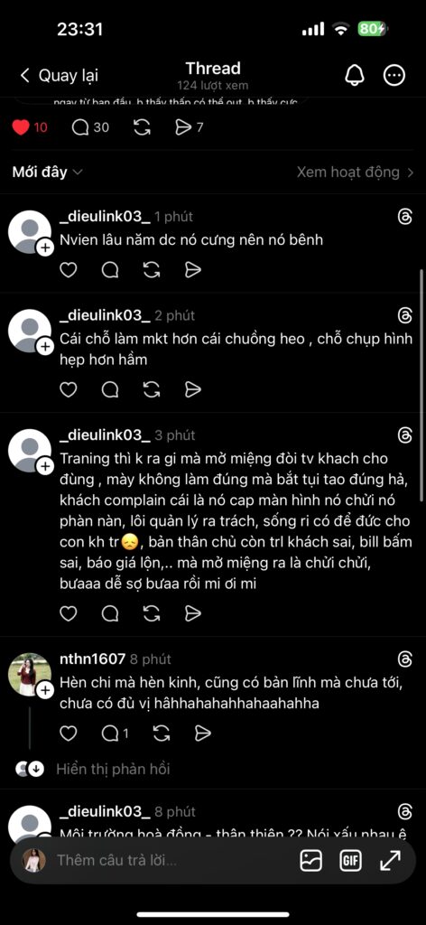 Đơn giản cái việc chào hỏi thôi mà bắt ở lại để chỉ dằn vặt: “Tại sao chị không bao giờ thấy em chào”. Trong khi nhân viên chào thì bị lơ đi, mà giờ quay sang bắt bẻ.